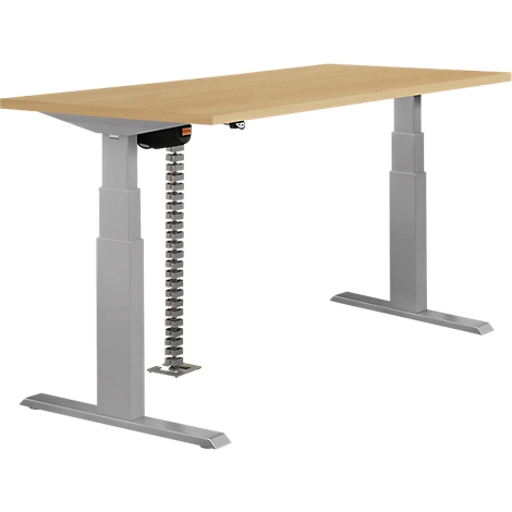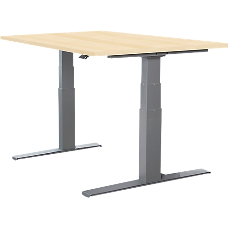 Schreibtisch einstufig elektrisch höhenverstellbar rechteck t fuß b 1200 mm x t 800 x h 705 1205 mm lichtgrau. Ein elektrisch höhenverstellbarer schreibtisch ist fundamental für ein artgerechtes arbeitszimmer. Ein höhenverstellbarer schreibtisch fördert die steh sitz dynamik.