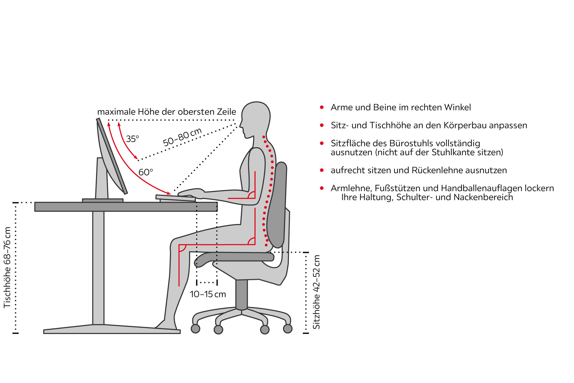 Schreibtisch ergonomisch einrichten. Ein einfaches trainingsprogramm für mehr bewegung am arbeitsplatz. Der abstand zwischen augen und monitor sollte zwischen 45 und 80 cm. Homeoffice ergonomisch einrichten ergonomie am bildschirmarbeitsplatz.