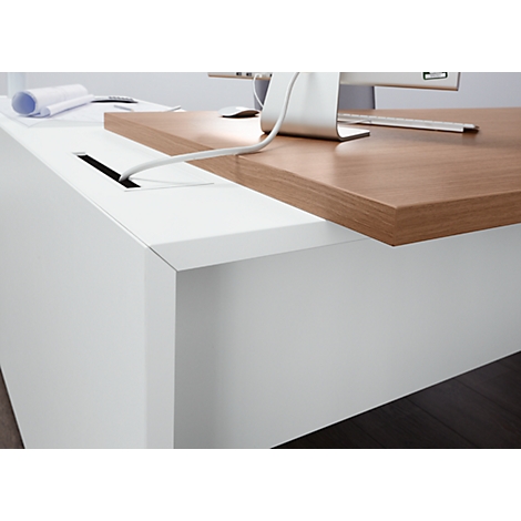 Schreibtisch mit sideboard anbau. Sie bieten mit ihrem maß von 200 x 120 cm viel platz zum arbeiten. Das sideboard ist in unterschiedlichen ausführungen erhältlich. Der schreibtisch verfügt über 2 rechteckige kabeldurchlassdosen und 1 80mm kabelkanal mit chrom oberfläche.