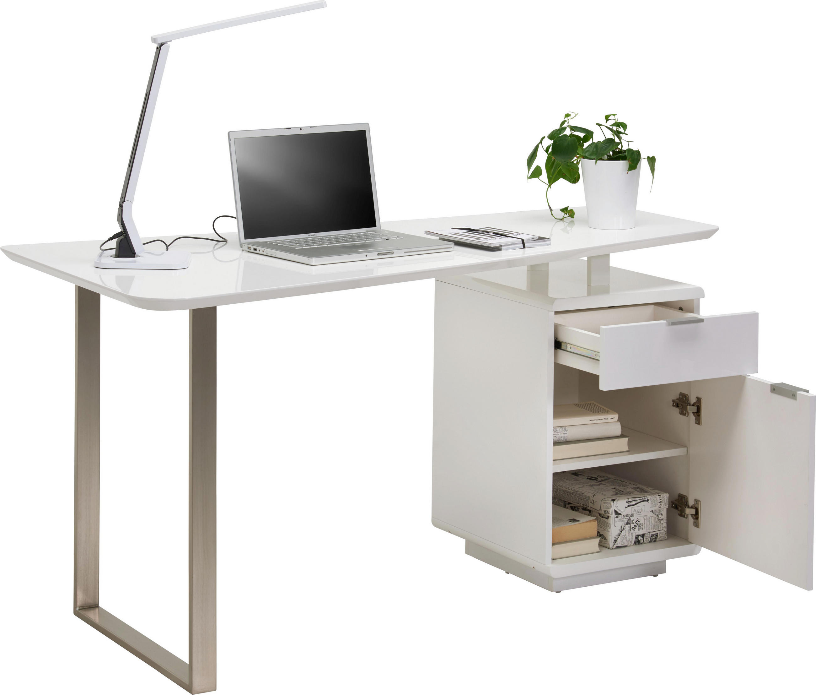 Schreibtisch Weiß Edelstahl