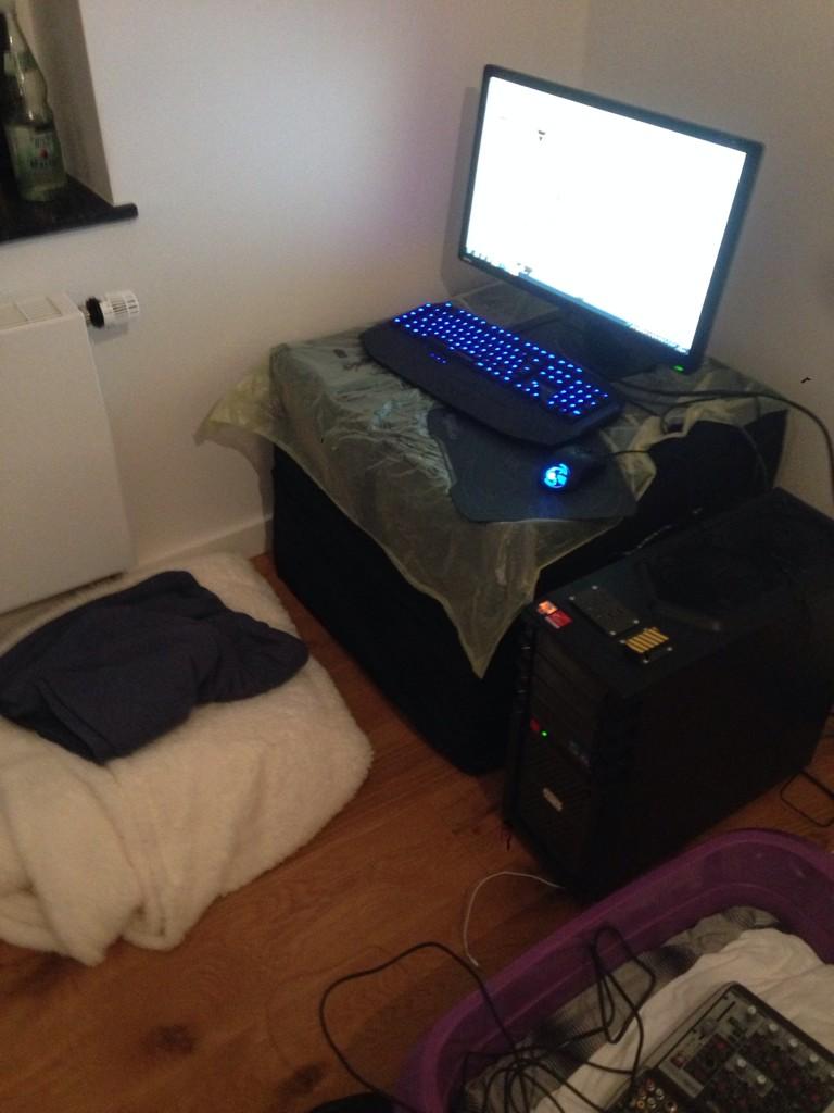 Der arme hat wirklich bedarf an einem coolen schreibtisch.